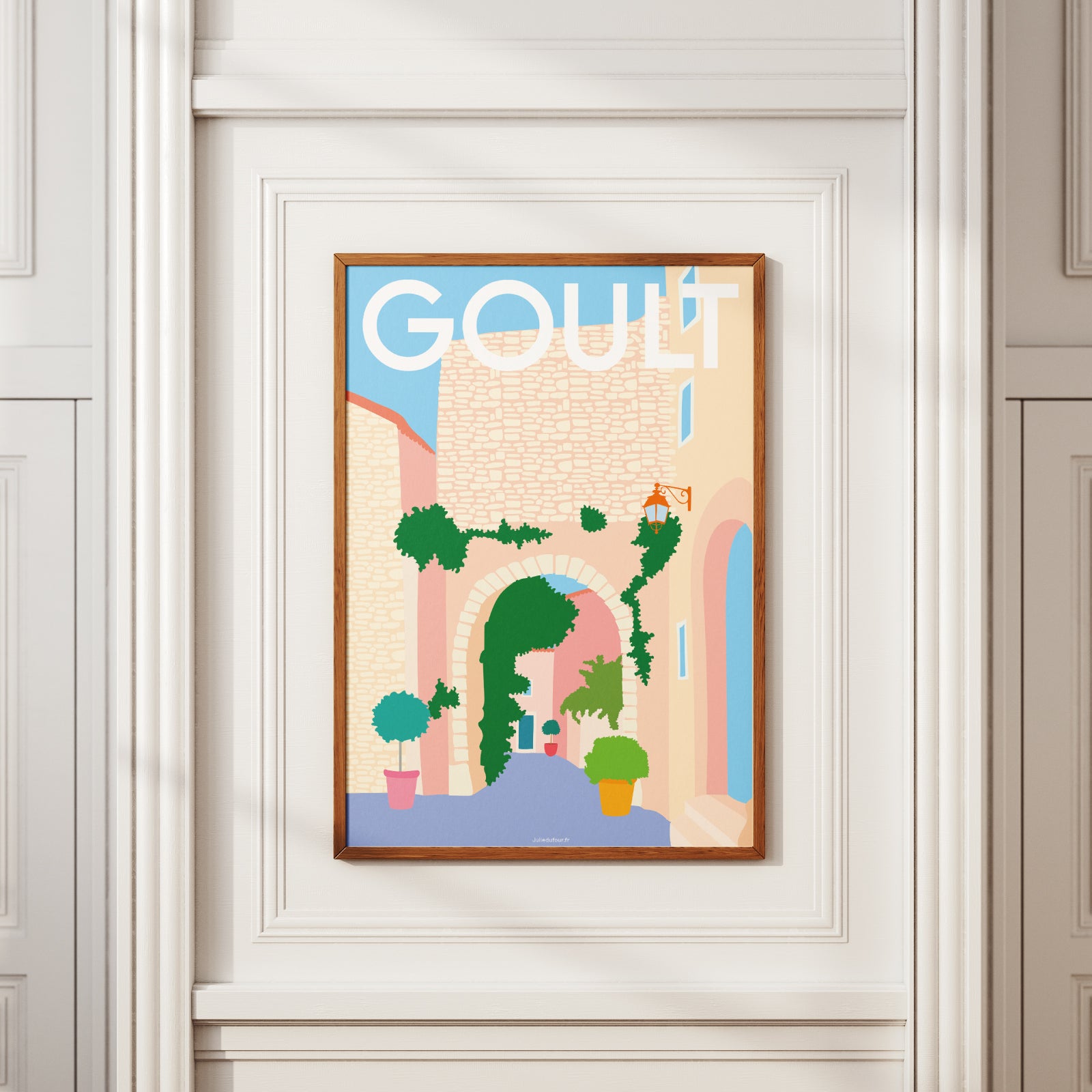 Apportez une touche solaire à votre intérieur avec cette affiche illustrée du village de Goult situé au coeur du Luberon en Provence, issue de ma collection dédiée à la Provence.