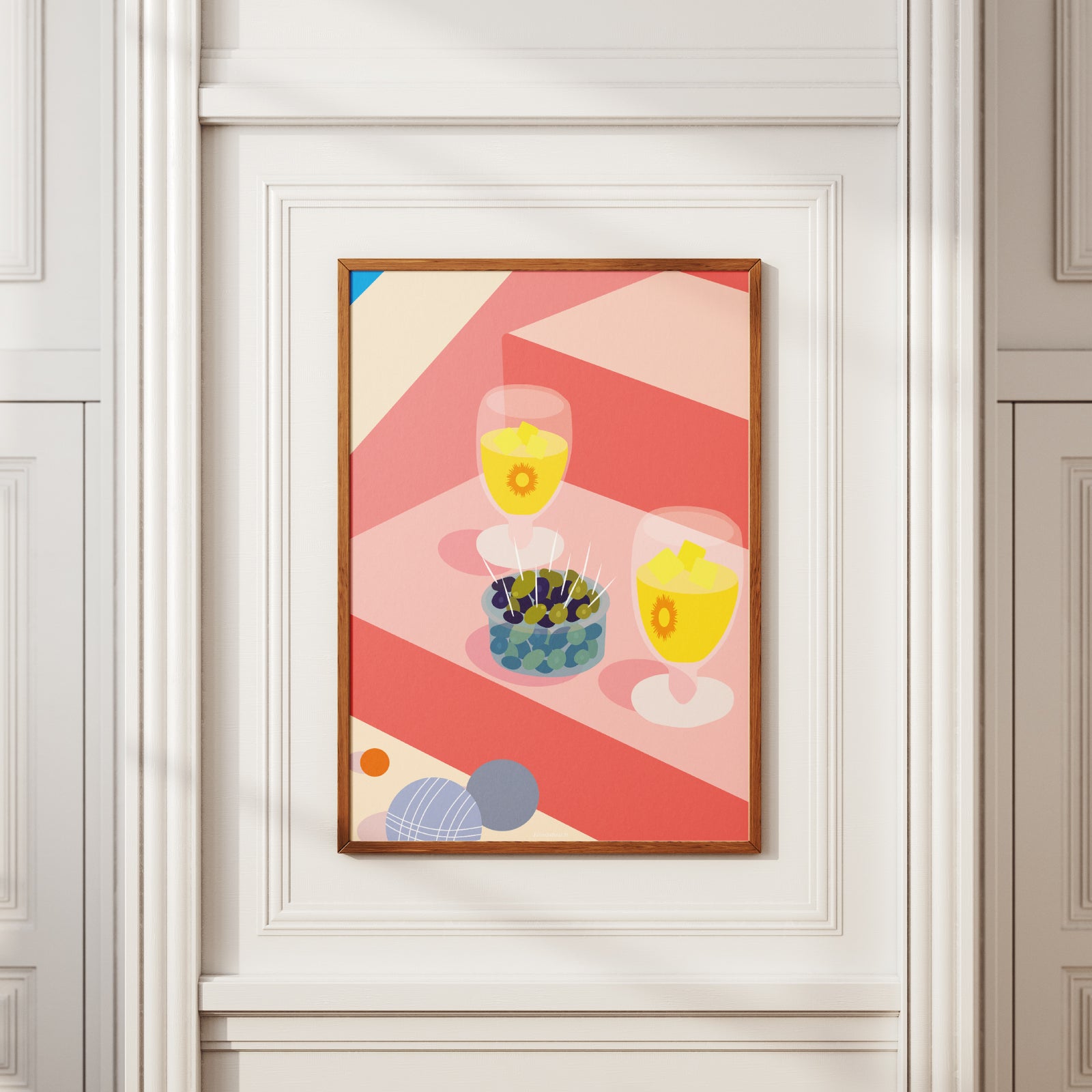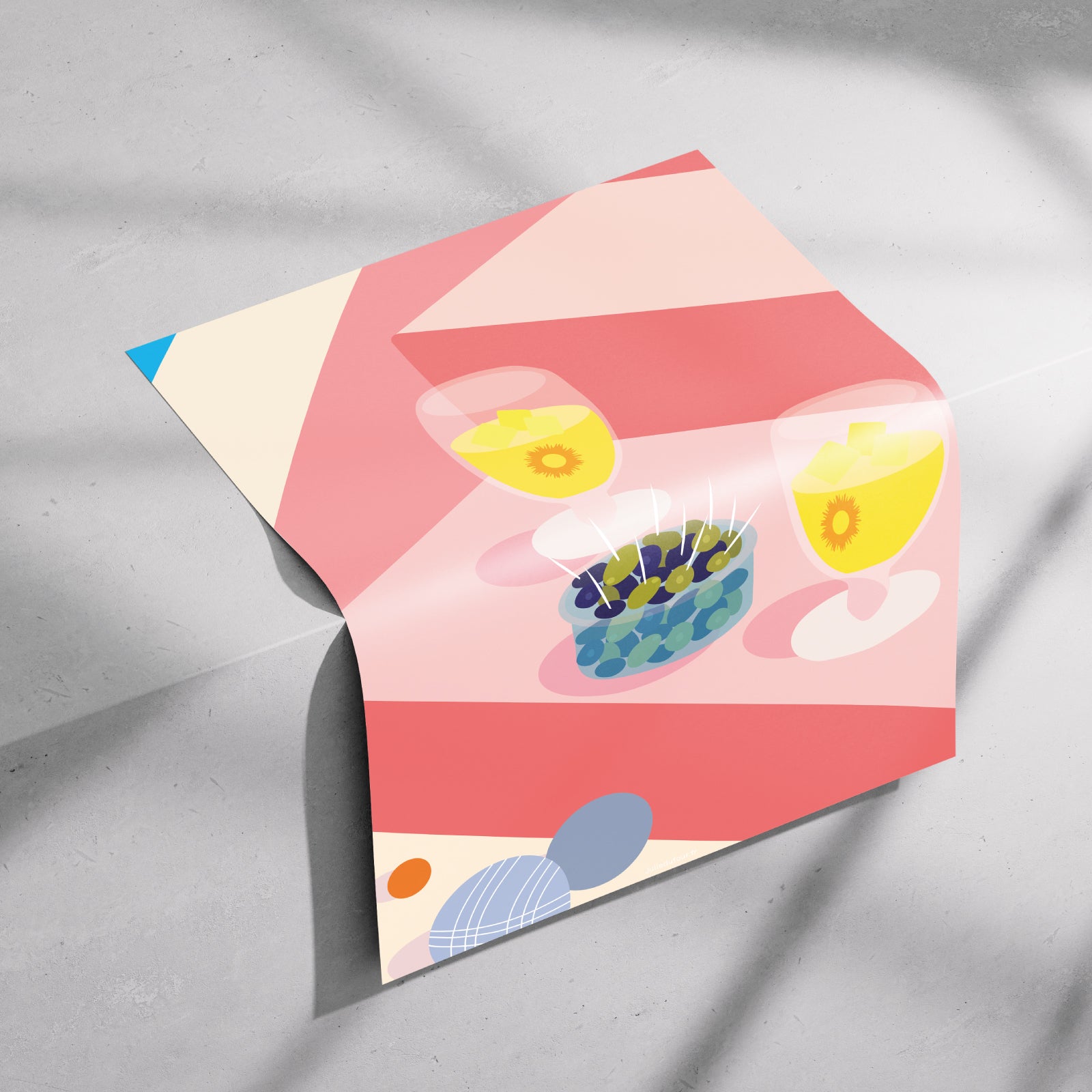 Apportez une touche solaire à votre intérieur avec cette affiche illustrée d'un moment de vie typique chez les sudistes, pastis et pétanque " en plein cagnard " issue de ma collection dédiée à la Provence.