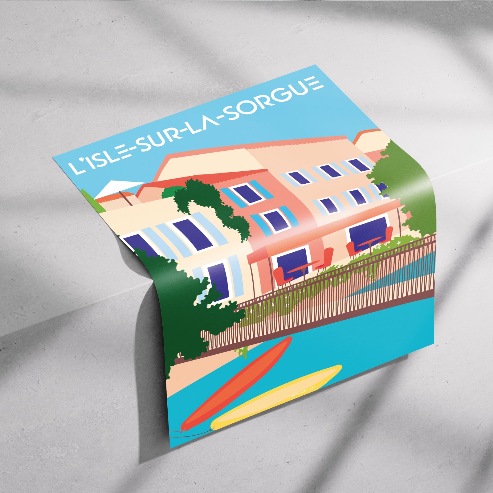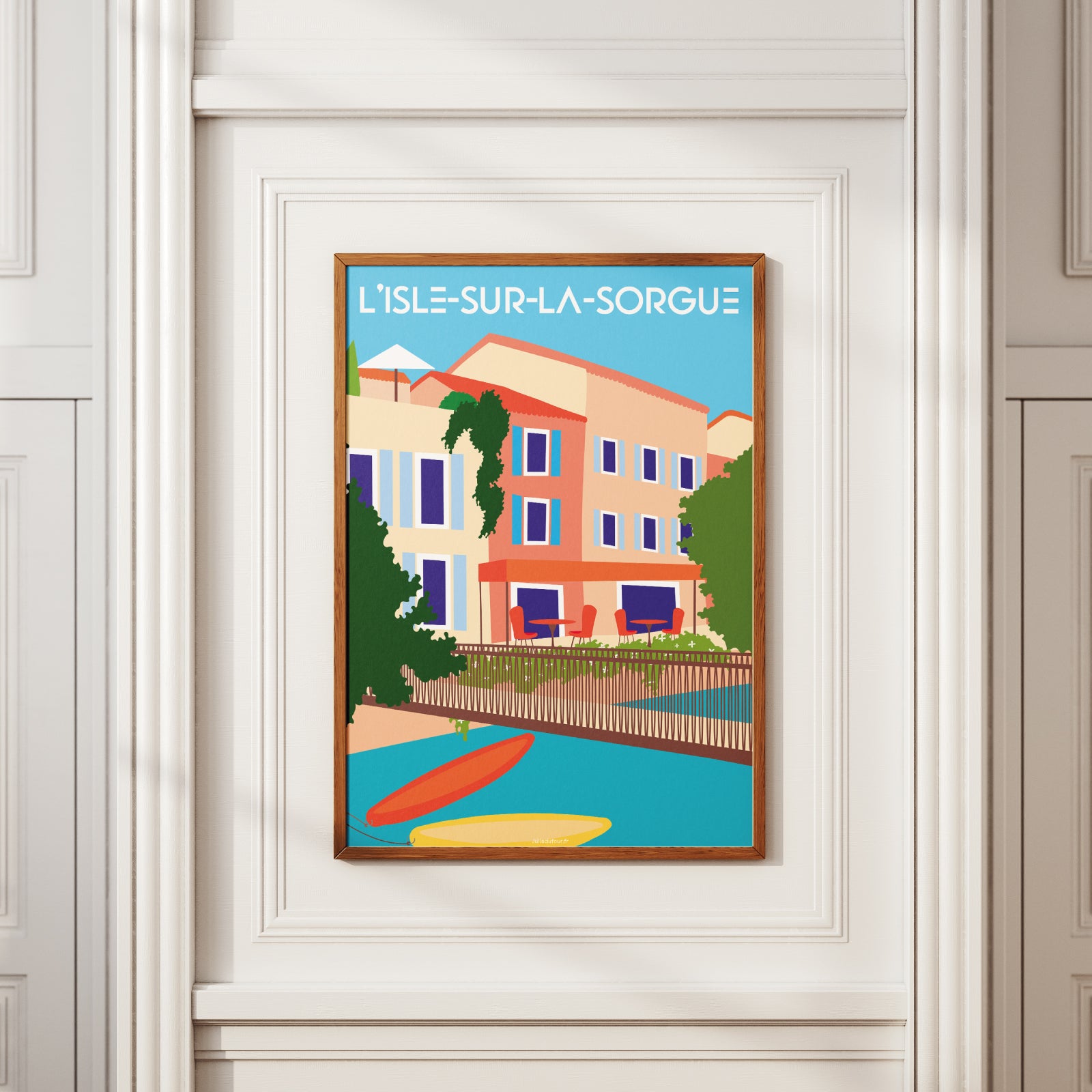 Apportez une touche solaire à votre intérieur avec cette affiche illustrée du village de L'Isle sur la Sorgue situé au coeur du Luberon en Provence, issue de ma collection dédiée à la Provence.
